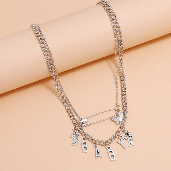 Your overall dress up can be enriched when you wear this necklace. Dual-layer style,decorated with pin and letters pendant,chic yet distinctive. Comes with a classic yet stylish silver tone,this necklace can easily be the finishing touch of your overall look.