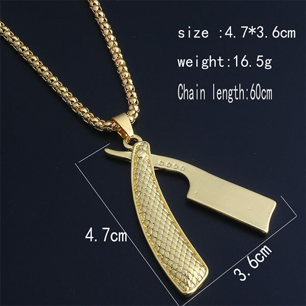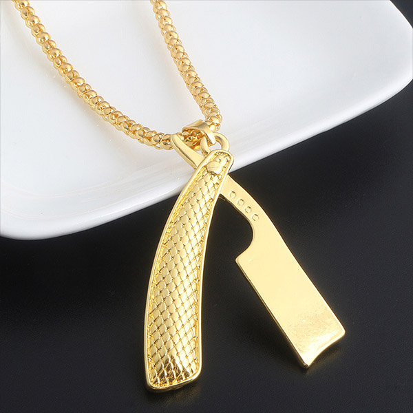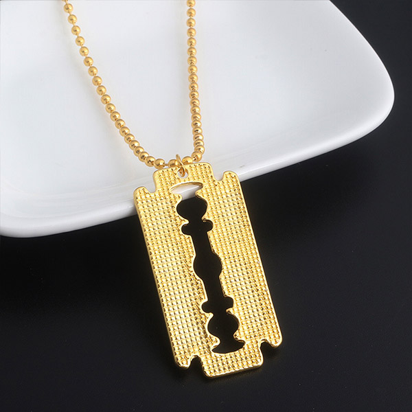 This necklace comes with a classic yet stylish gold tone,decorated with a razor pendant,chic yet stylish. This little piece is a good way to add a dash of personality to your overall look.