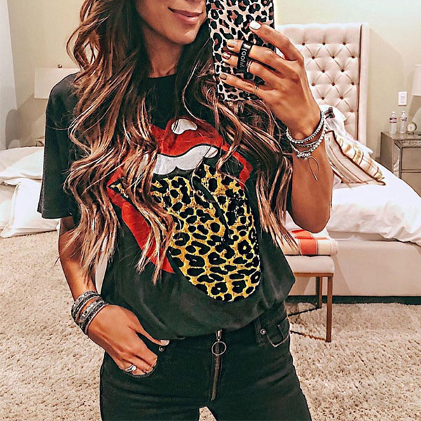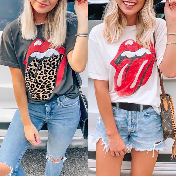 Your chic style and personality can have a full display in this t-shirt! It is crafted from soft and breathable fabric,with short sleeve and round neck design,simple,cozy,stylish and all-match. Moreover,the red-lip printed pattern design makes this piece look more playful and eye-catching. For your casual time,this piece is a good choice.