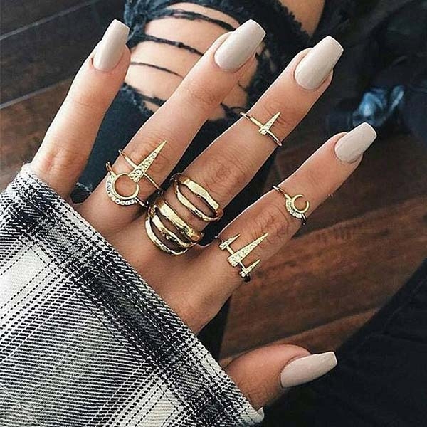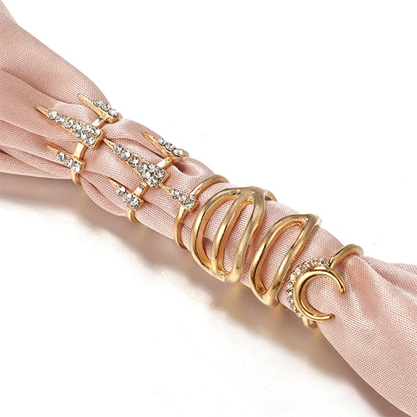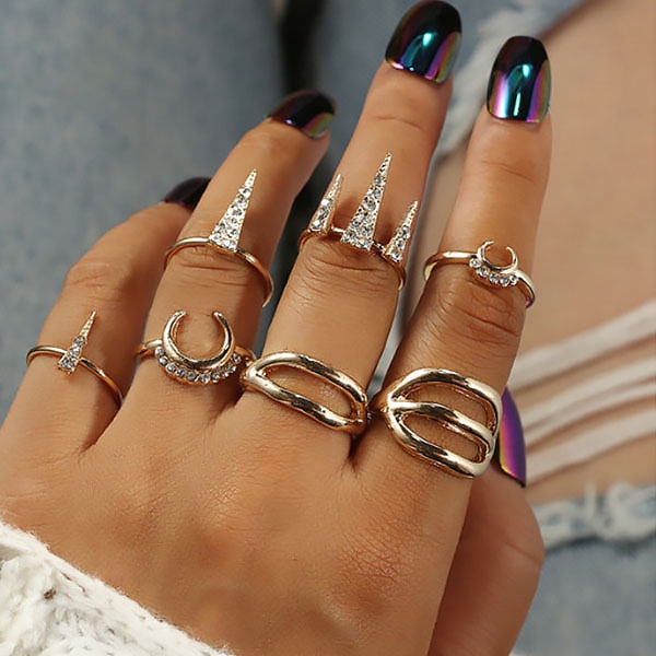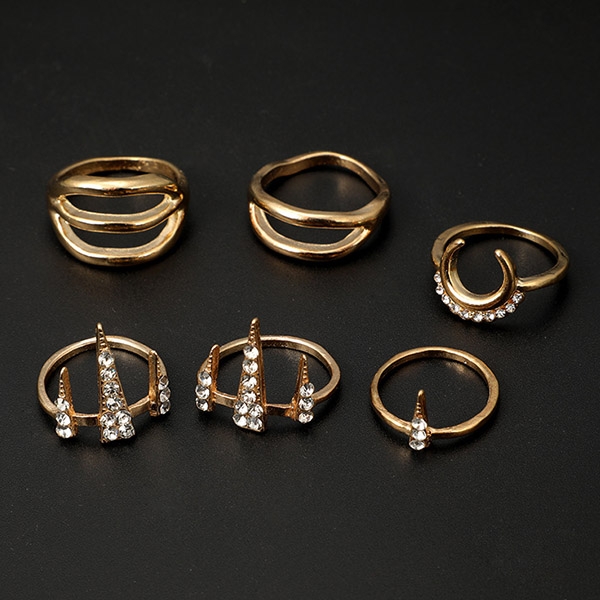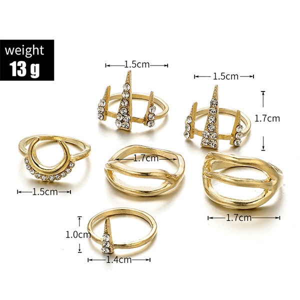 It consists of 7 pieces different rings,coming with a classic yet stylish gold tone,the rhinestone