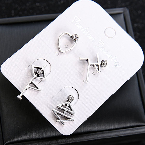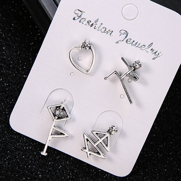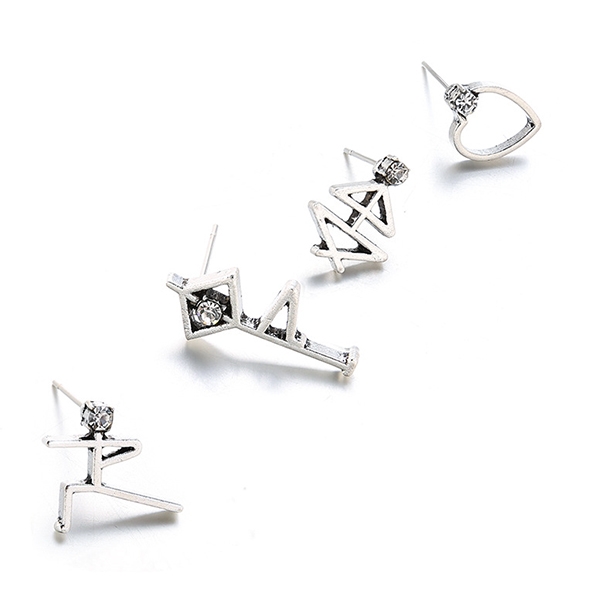 Chic Style Rhinestone Inlaid Alloy Stud Earring Set 4 pcs/Set