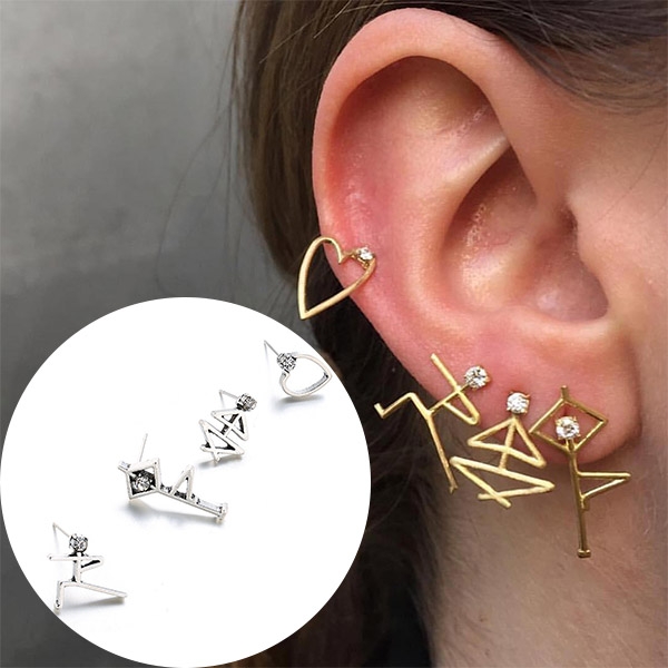 Consists of 4 pieces different stud earrings,this stud earring set of course can make your overall dress up