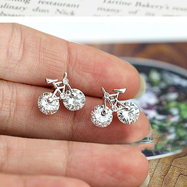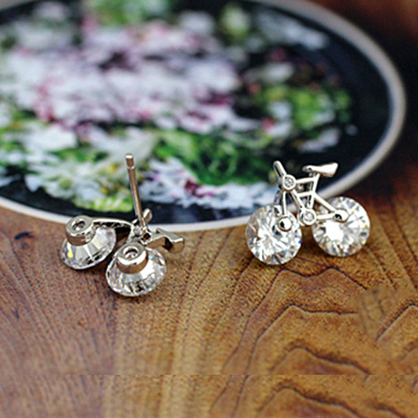 Chic Style Rhinestone Inlaid Bicycle Shaped Stud Earrings
