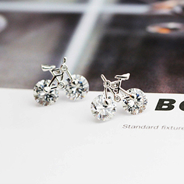 Add a dash of chic and stylish vibes to your look with the help of this pair of stud earrings. Bicycle shaped design,inlaid with rhinestone details,shinning and attractive. These pieces can be a perfect addition for a charming look.