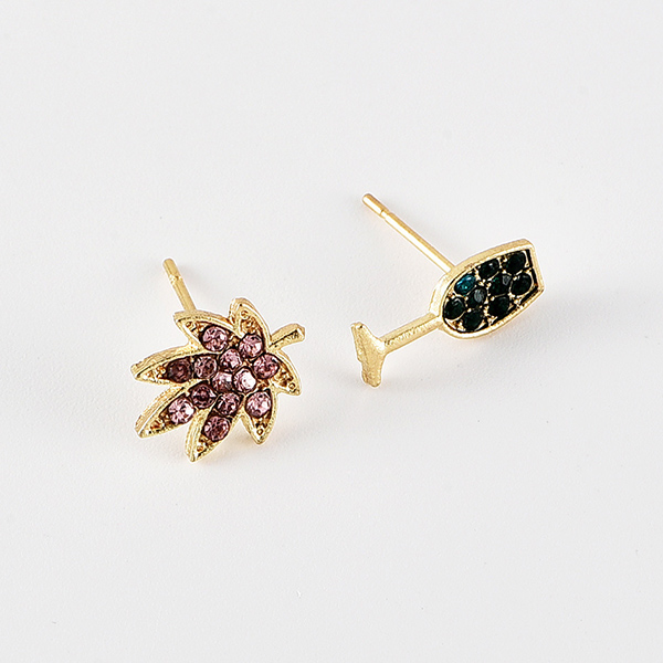 Chic Style Rhinestone Inlaid Leaf Wine Glass Shaped Asymmetric Stud Earrings