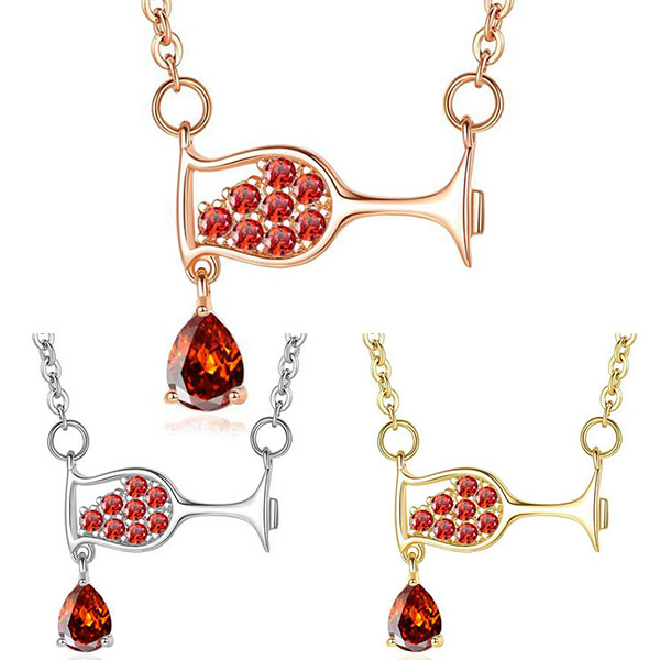 Chic Style Rhinestone Inlaid Wine Glass Pendant Necklace
