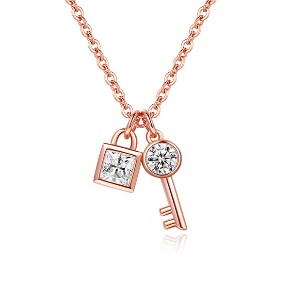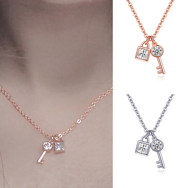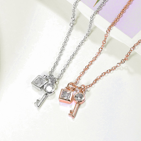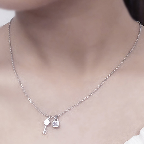 Chic Style Rhinestone Key&Lock Pendant Necklace