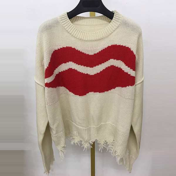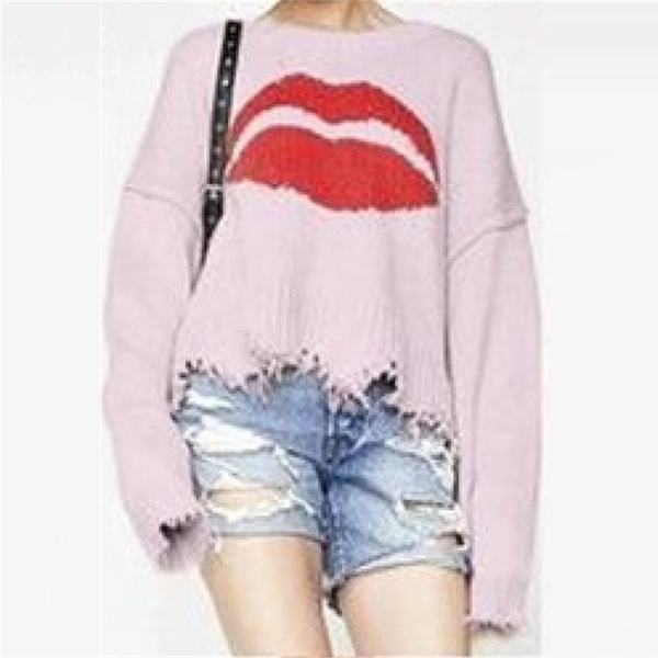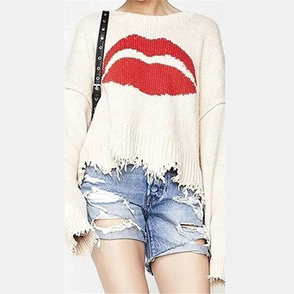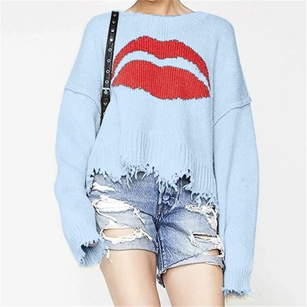 This chic sweater is the one that will effortlessly enhance your level of stylish. That's why we love this sweater! The red-lip pattern and tassel hem design are the highlight,which make this piece look so distinctive and attractive. When the days start to get cold,this sweater that exudes chic and stylish vibes is worth to arouse your attention.
