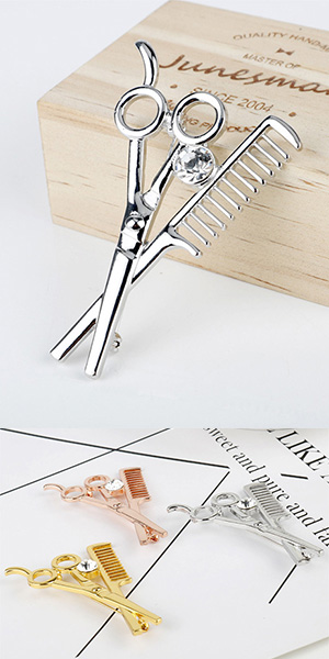 Wanna enrich your simple and dull dress up? Then we suggest you adding this brooch. The scissors and comb shaped design make it look so chic and unique. It can easily be the highlight of your overall look. So why not add it to your accessory box?