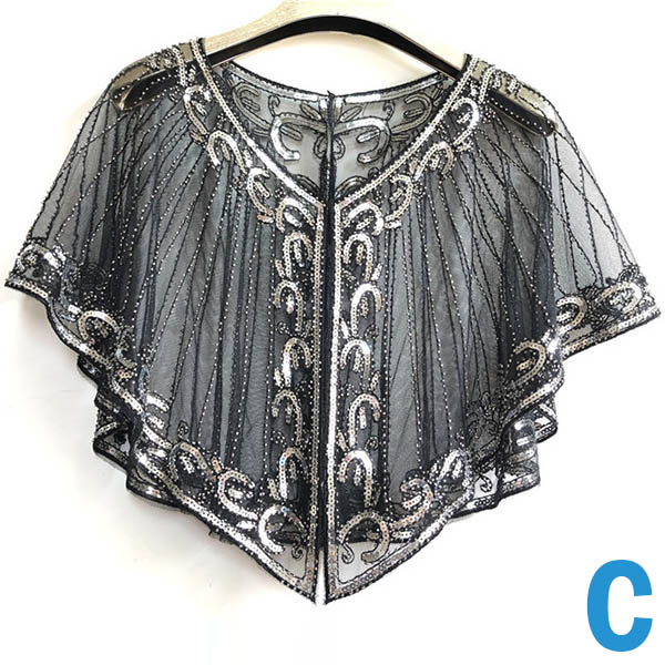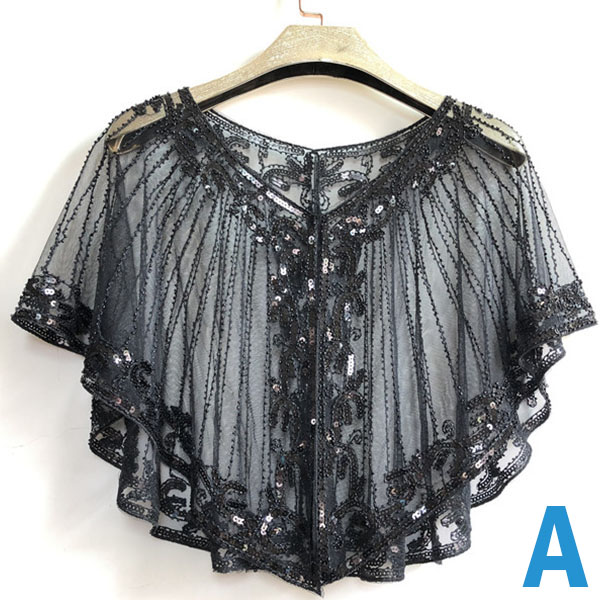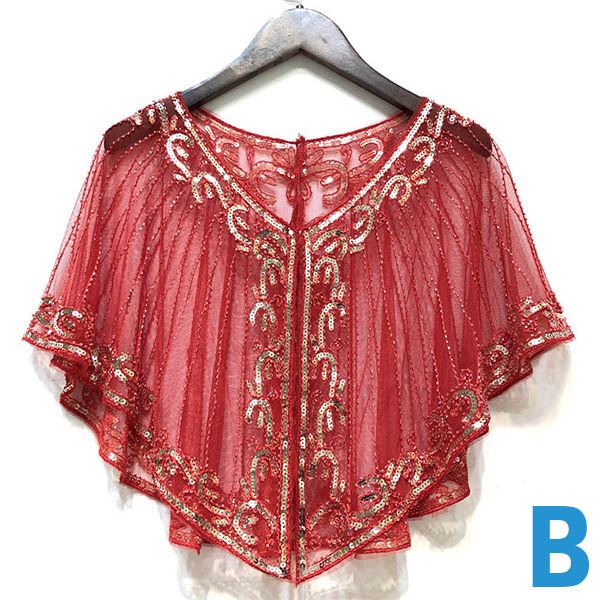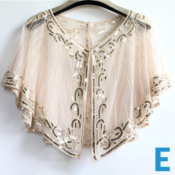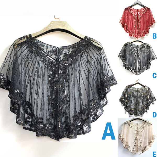 Wanna make your overall dress up full of style and charm? Then this shawl can be a good helper. See-through gauze and sequin spliced details make it look so stylish and attractive. You can match it with your strapless dresses or sling dresses to finish a charming look.