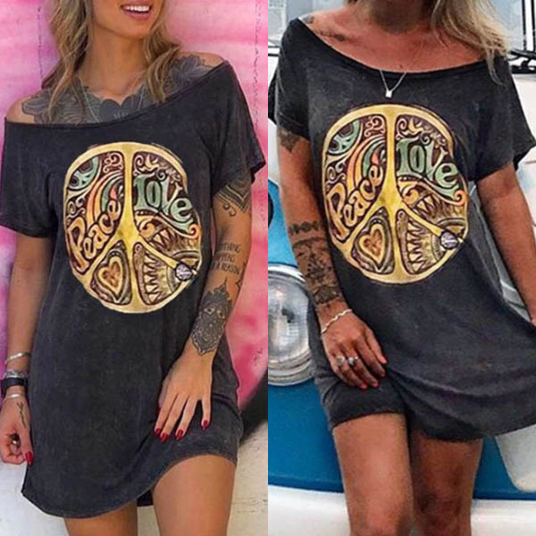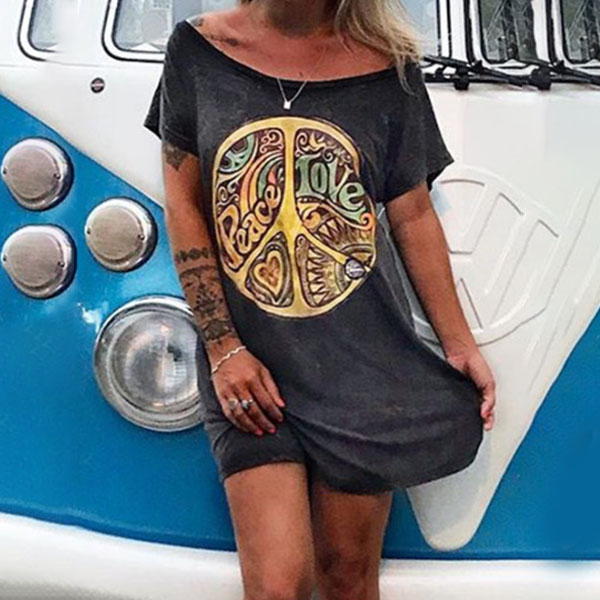 For your weekend out,you can trust in this t-shirt dress to have a relaxed yet stylish style. The chic printed details make it look more attractive. Finished with short sleeve,boat neck and a loose silhouette,this dress can maintain the comfy while it exudes your personality.