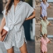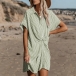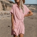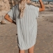 Chic Style Short Sleeve POLO Collar Twisted Stripe Dress
