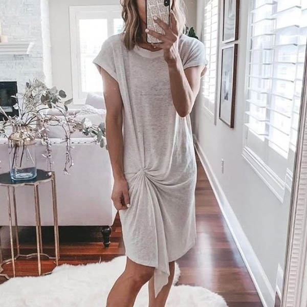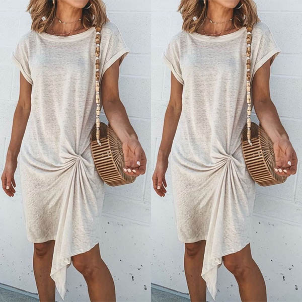 Hey,girls,you can trust in this dress to exude your chic and stylish personality through this dress. Boasts a solid color,the irregular hem and twisted design make this piece look so attractive. Your daily style can have an update with this dress.