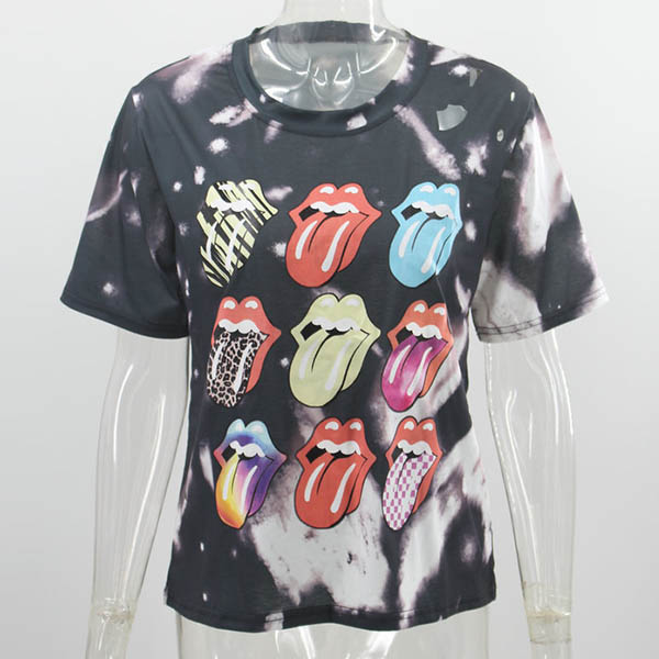 Chic Style Short Sleeve Round Neck Lips Printed T-shirt