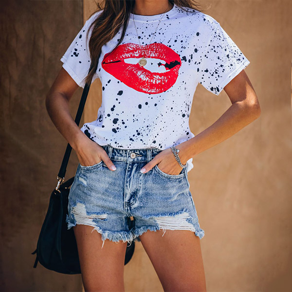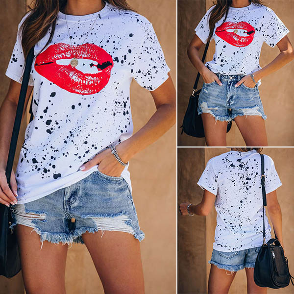 Crafted from soft and breathable fabric,with short sleeve and round neck design,this t-shirt can ensure you a comfortable day. In addition,the chic printed details and lip pattern design make this piece look more playful. You can match with any bottoms you like to start your wonderful day.