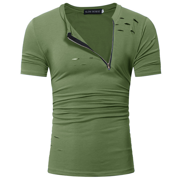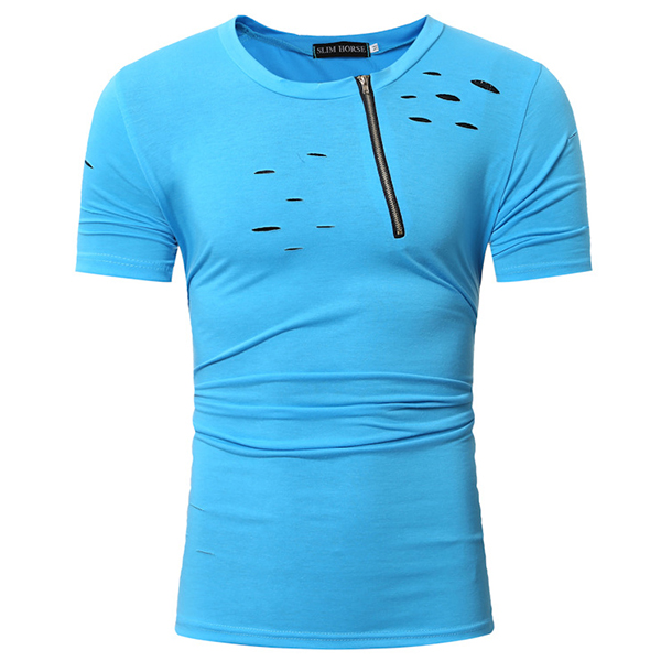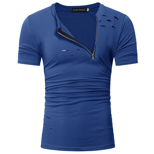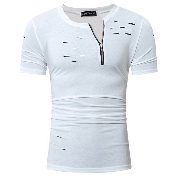 comfortable day,while its ripped details and zipper design at neckline part make this piece look more distinctive.