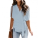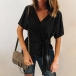 Chic Style Short Sleeve V-neck Irregular Hem Lace-up Top