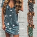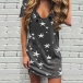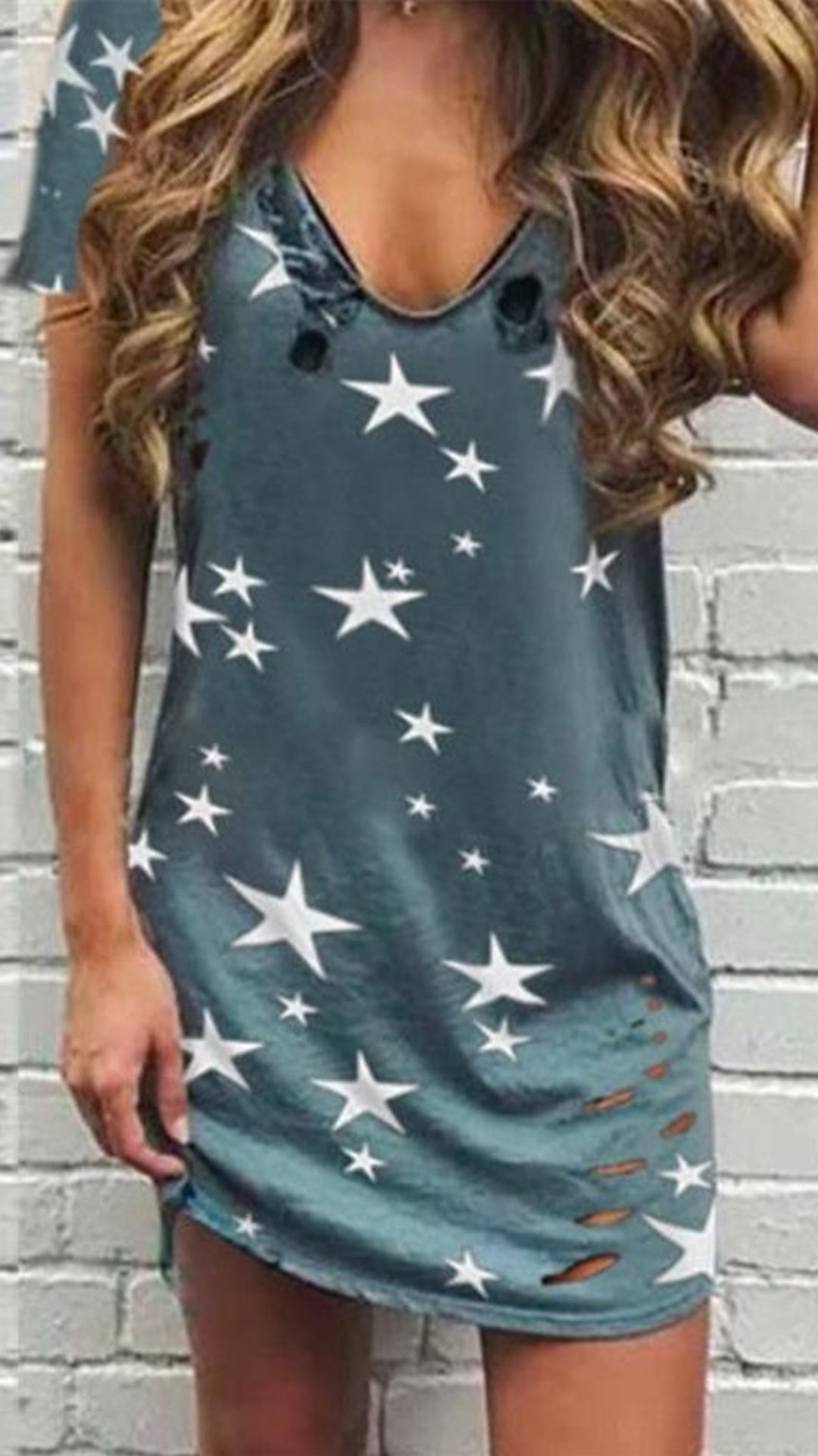 Chic Style Short Sleeve V-neck Star Printed Ripped T-shirt Dress