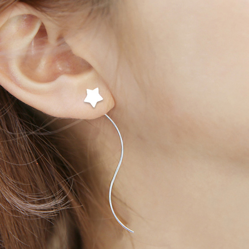 Chic Style Silver Tone Star Curved Alloy Bar Earrings