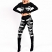 When you don't know what to wear on the All Saints' Day,you can just make your eyes focused on this two-piece set. The skull hand pattern design makes it more matching with the atmosphere. Including a long sleeve round neck t-shirt and a high waist pants,this two-piece set can give you a memorable day.