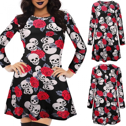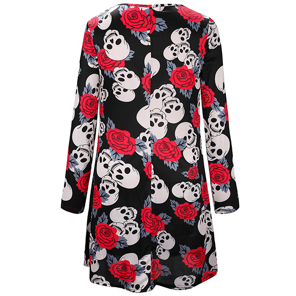 Chic Style Skull Head Printed Long Sleeve Round Neck Dress