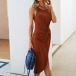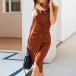 At your first sight,you would be attracted by this chic and unique dress. It comes with a solid color,finished with sleeveless,round neck and a fit silhouette,this dress knows how to give you a comfortable day. Moreover,the irregular hem and twisted design will make this piece look more distinctive and attractive. Like it? Then invite it to your wardrobe!