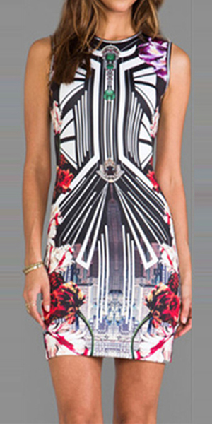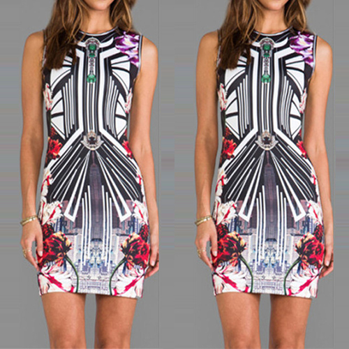 boasts chic and unique printed pattern,with sleeveless,round neck and a sleek silhouette,this dress is perfect for your daily wearing.