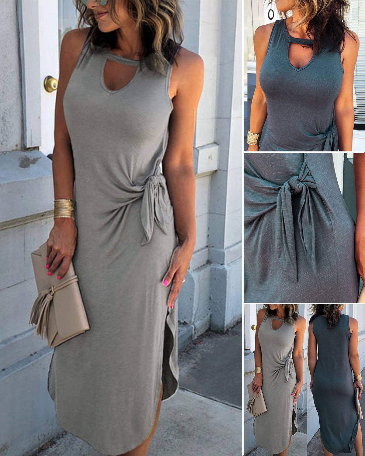 Summer dresses are a quintessential must-have when the season hits, celebrate the occasion with this tank dress to swing to your heart's desire. Boasts a solid color,the slit hem and lace-up design at the waist part will make this piece full of style and charm. Enjoy your summer days with this wonderful dress.