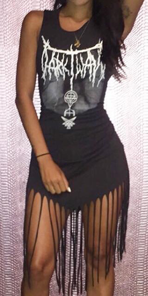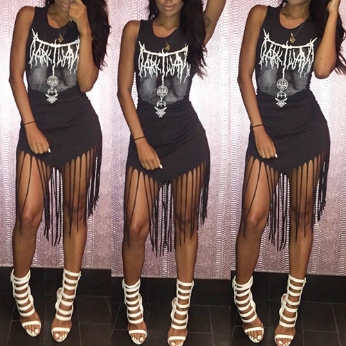 round neck and tassel hem,stylish and unique. Paired with your strappy heels for a charming street style.