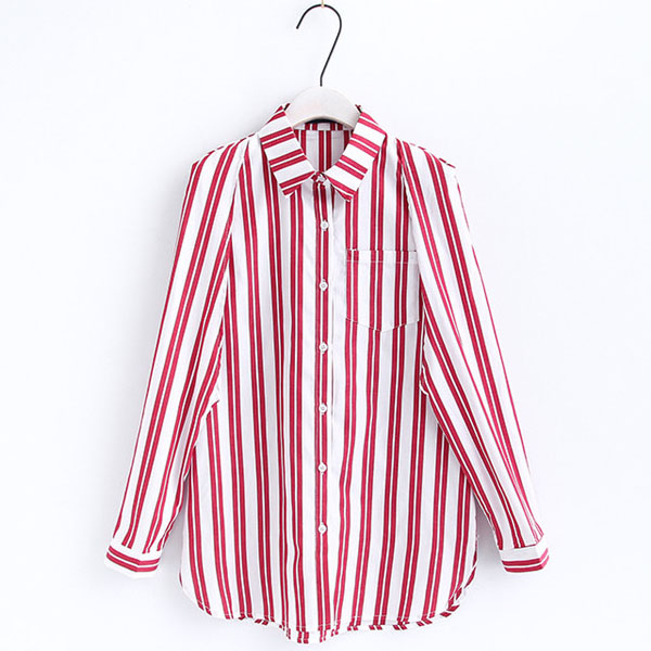 Slip into this shirt to make your fashion style boosted. Striped style,designed with long sleeve,POLO collar,single-breasted