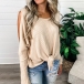 Chic Style Slit Long Sleeve Round Neck Solid Color T-shirt