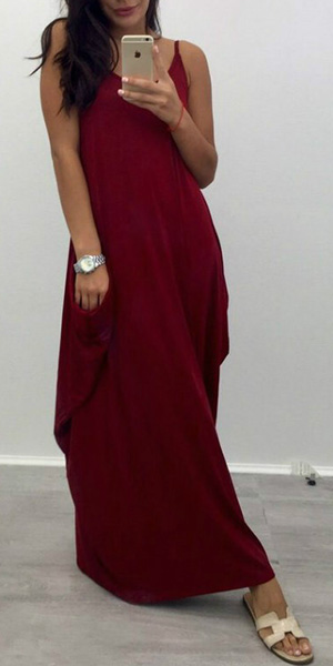 Sling style,designed with solid color,maxi length and a loose silhouette,