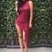 Slip into this sleeveless dress for a chic and sexy look. Solid color style,its soft and cozy fabric