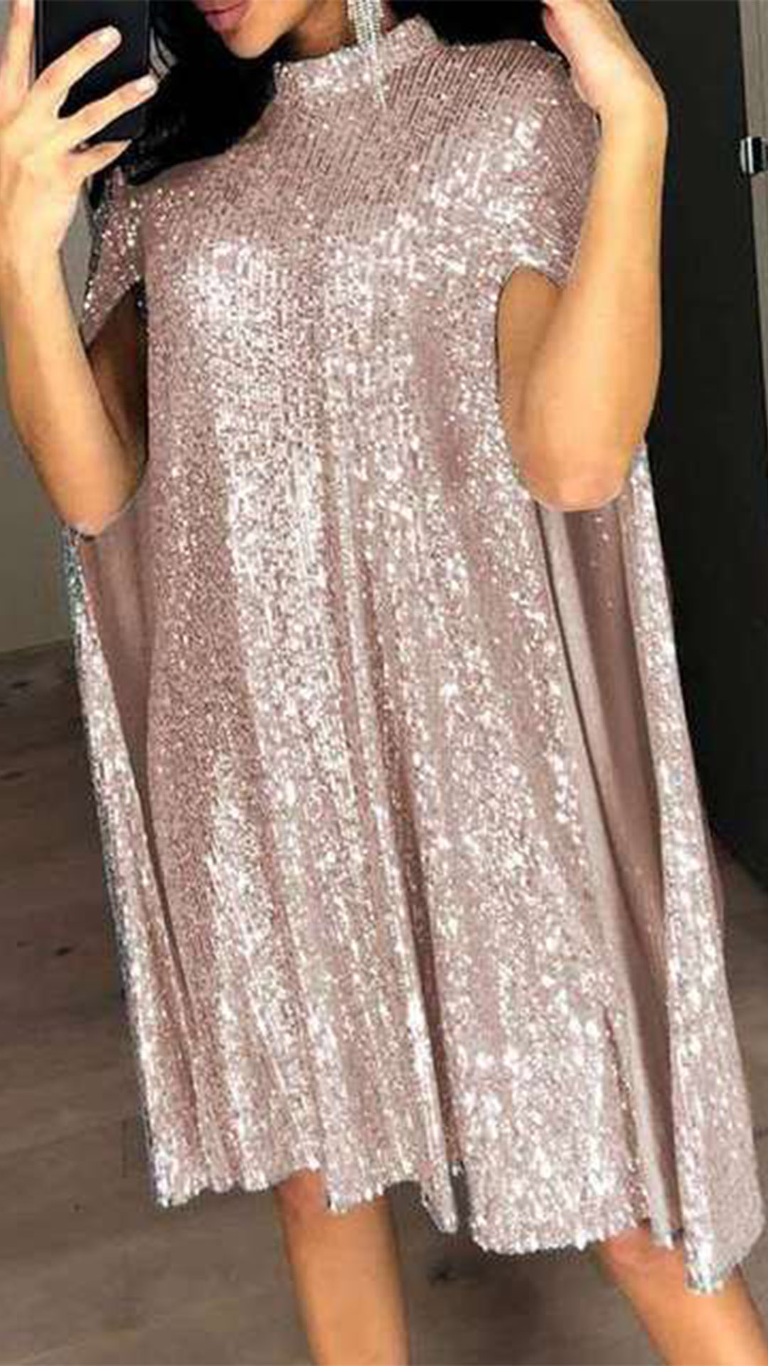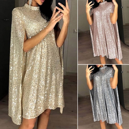 Chic Style Stand Collar Cape-style Sequin Party Dress