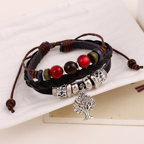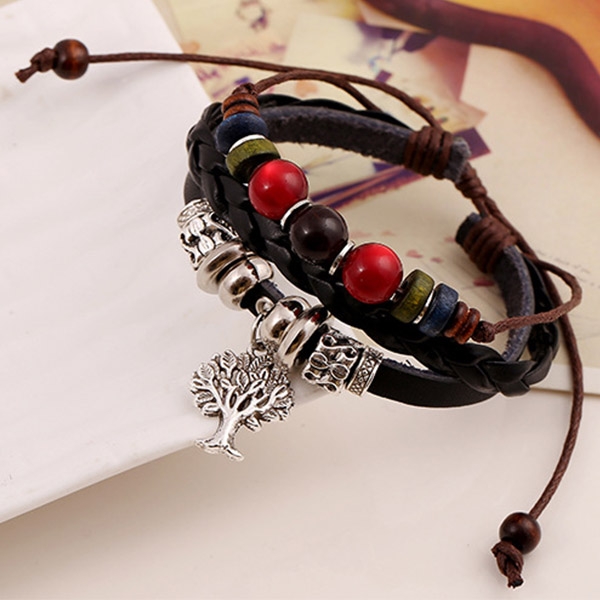 Chic Style Tree Pendant Braided Beaded Bracelet