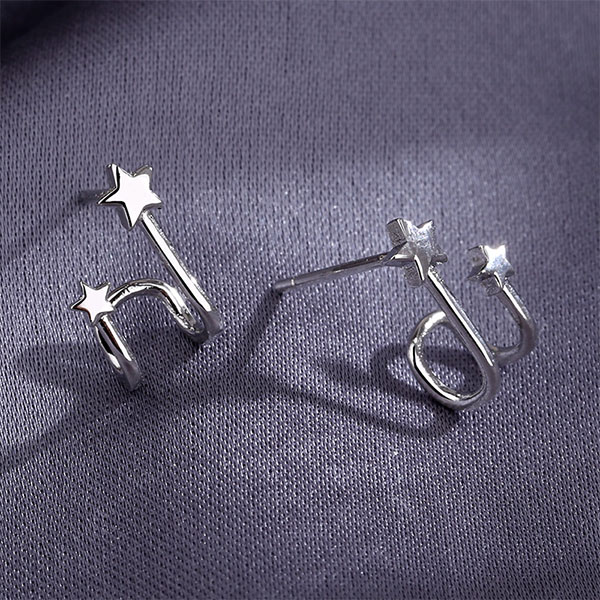 As a perfect addition for a more delicate and charming daily look,this pair of stud earrings is worth to have a place in your accessory box. Comes with a classic yet stylish silver tome,the U-shape and star design make it look so distinctive. Finish your beautiful daily look with these pieces.