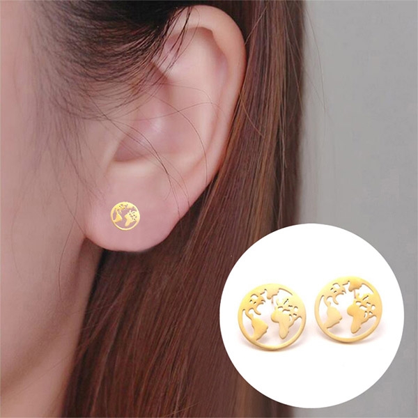 Add a dash of chic and stylish vibes to your overall look with these stud earrings? World map shaped