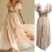 M=US8 : Bust : 98cm(38.58"); Waist : 68cm(26.77"); Shoulder : 39cm(15.35"); Sleeve : 62cm(24.41"); Length : 138cm(54.33");