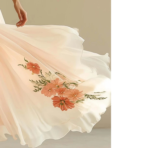 Chiffon Long Skirt in Warm Colors with Traditional Embroidery Details