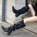 Chunky-Heel Knee-High Boots with Buckle Detail