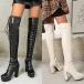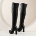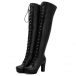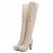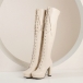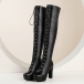Chunky Heel Square Toe Lace Up Over Knee Boots