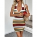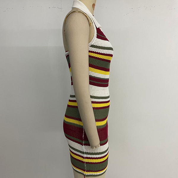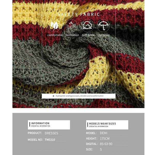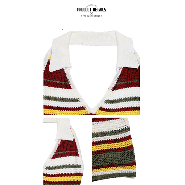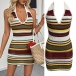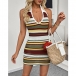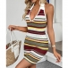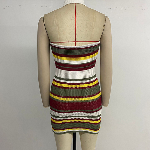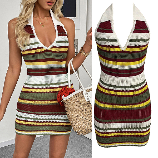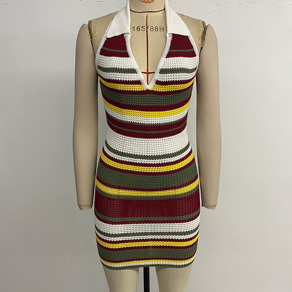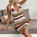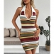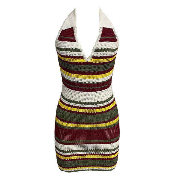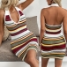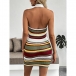Fashion Contrast Color Halterneck V-neck Backless Bodycon Knitted Dress