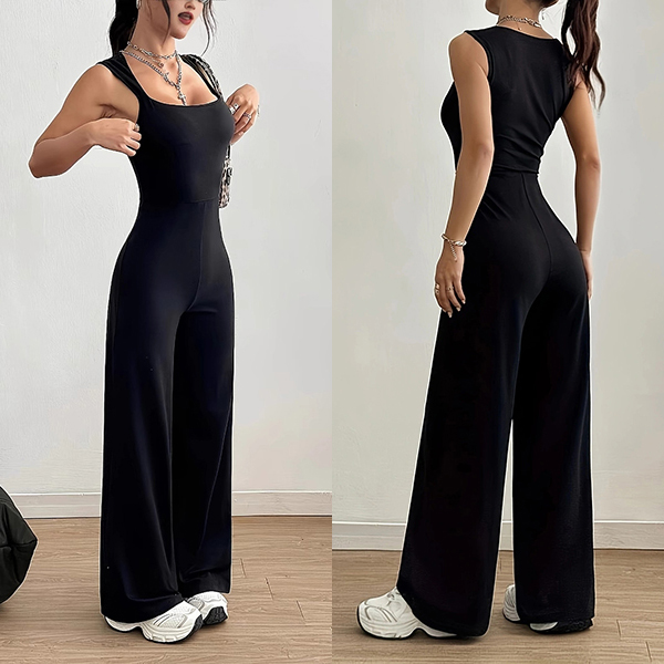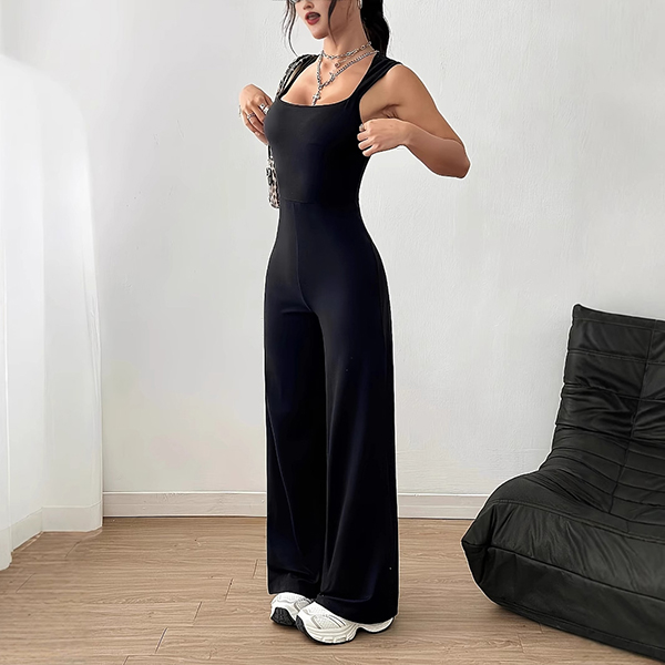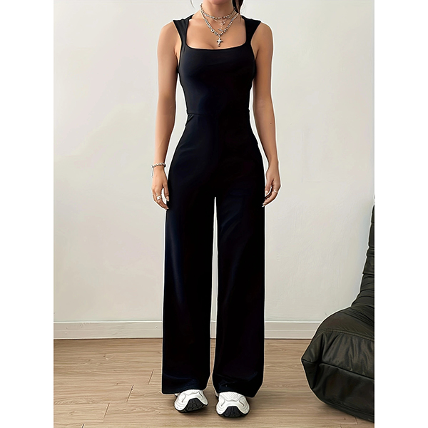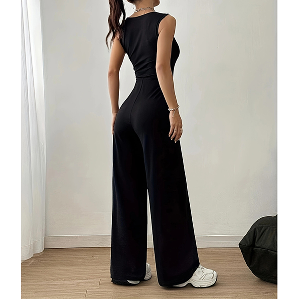 Collarless Sleeveless Strapless Casual Wide-Leg Jumpsuit
