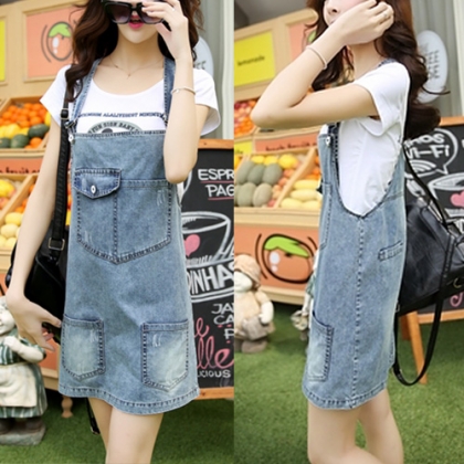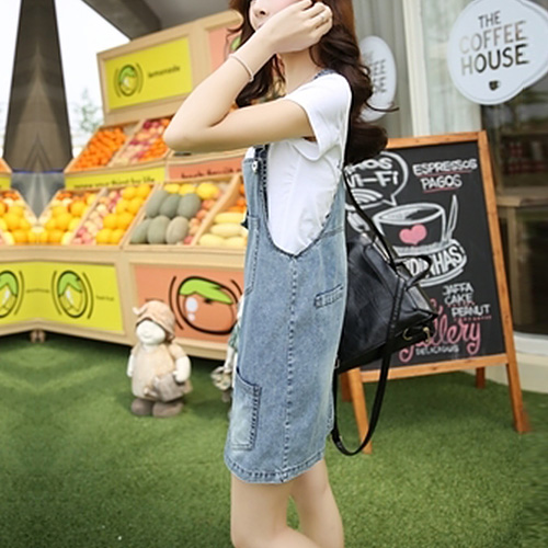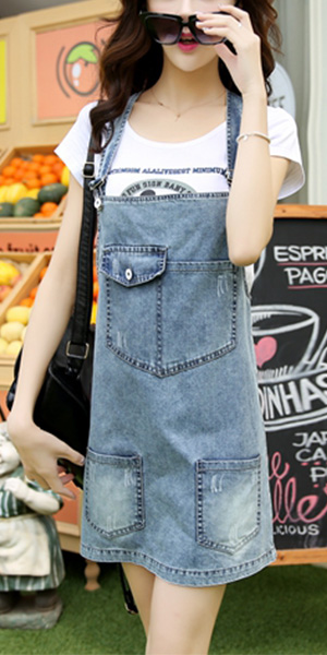 This denim suspender dress can show your youthful vitality and stylish style. Exquisite workmanship