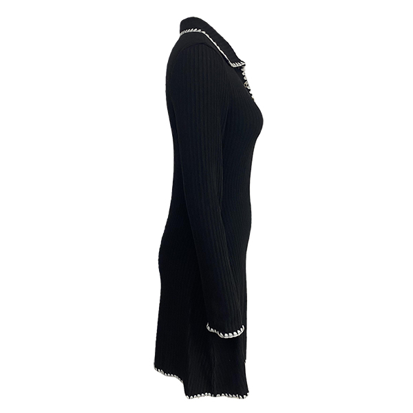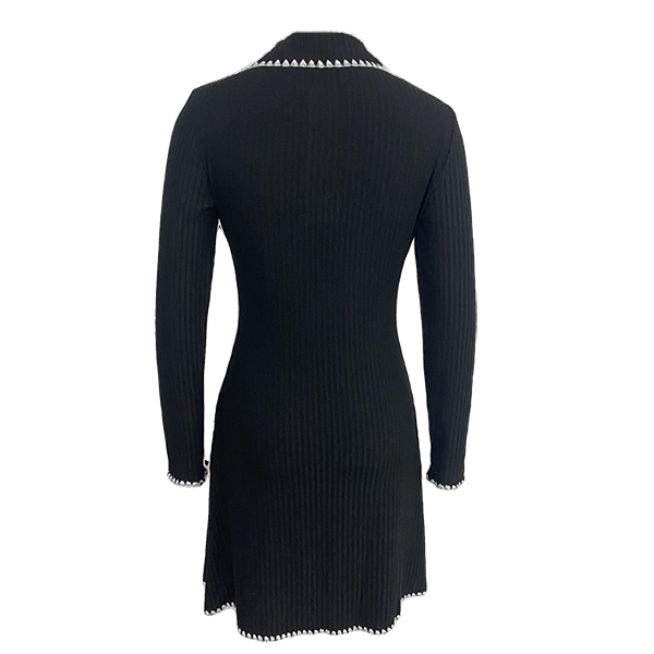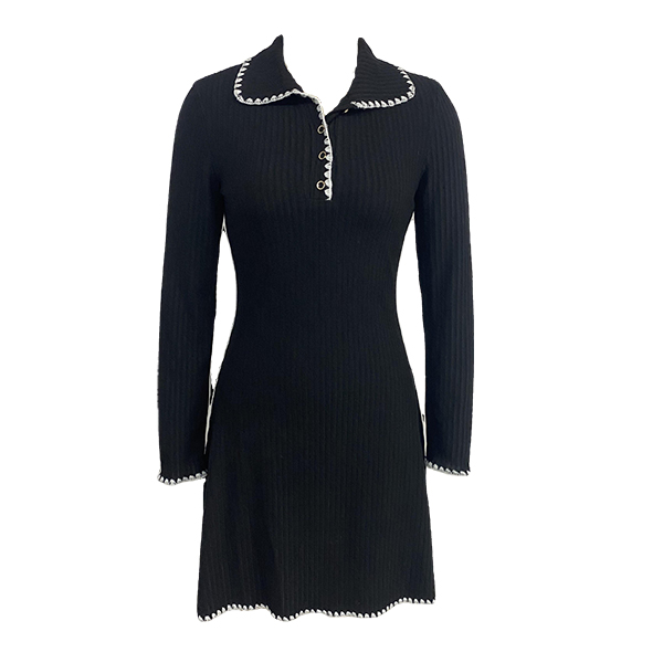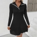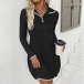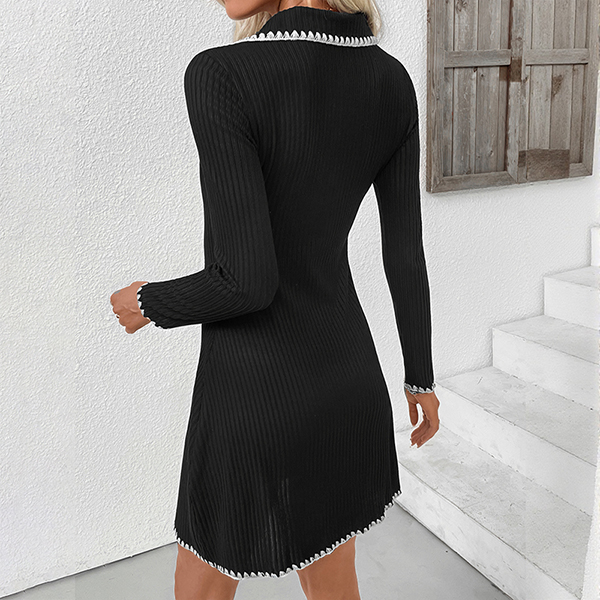 Fashion Contrast Color Stand Collar Long Sleeve Knitted Sweater Dress