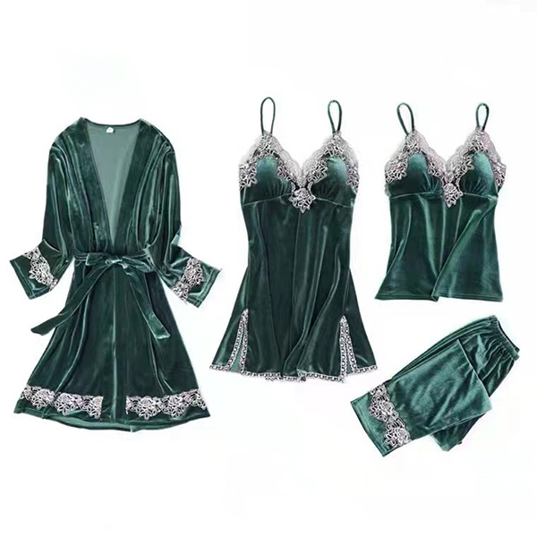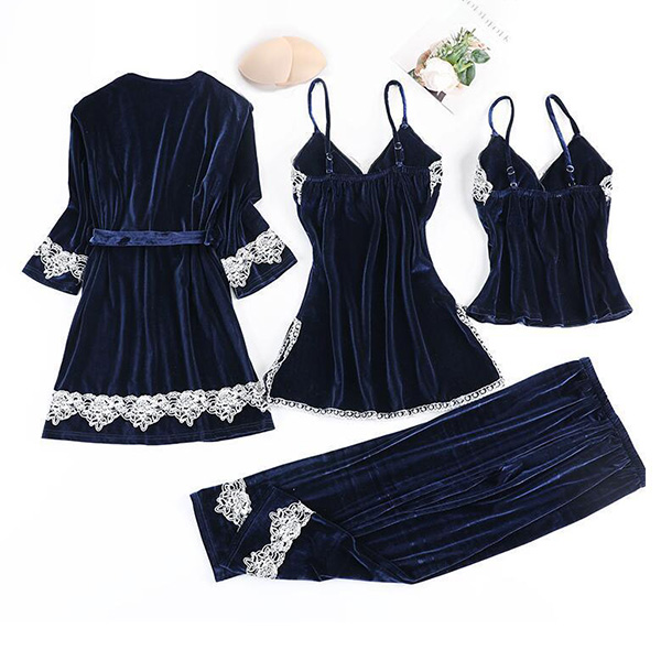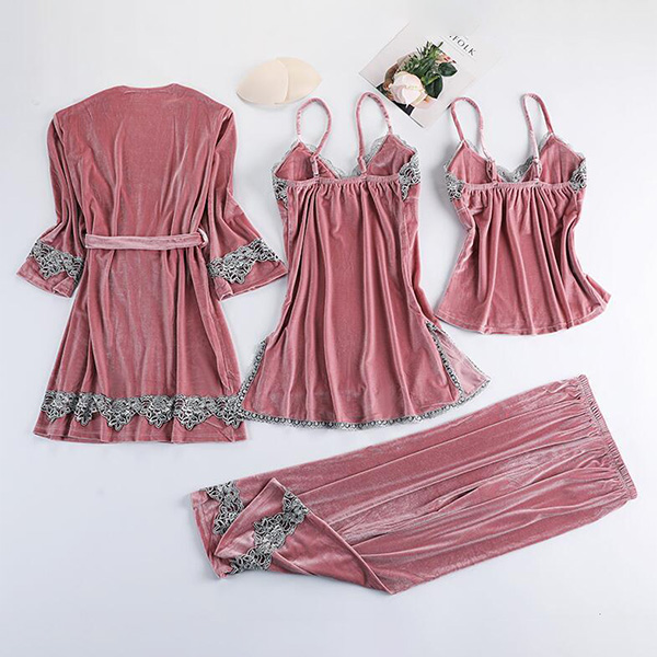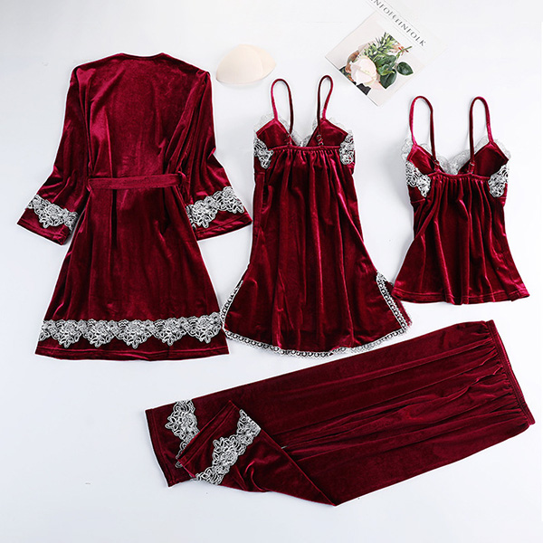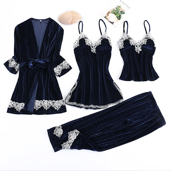 Comfortable Lace Spliced Velvet Four Piece Pajamas set