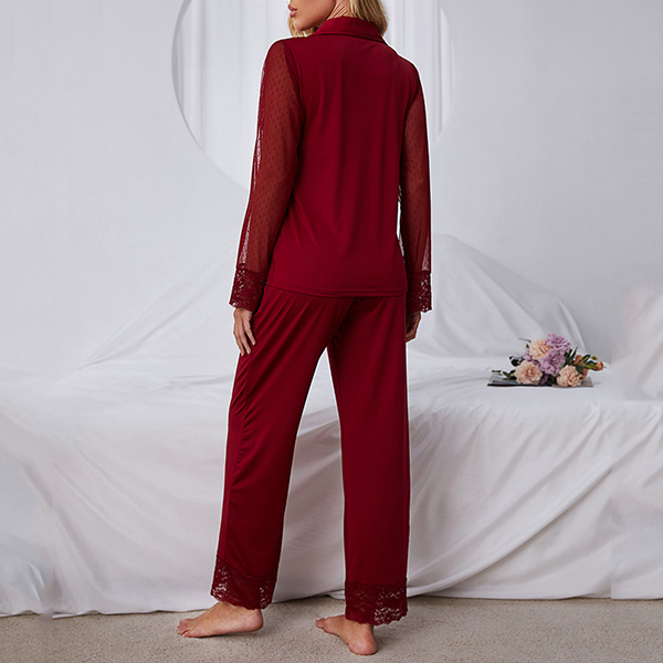 Comfortable Solid Color Gauze Lace Spliced Two-piece Loungewear Set