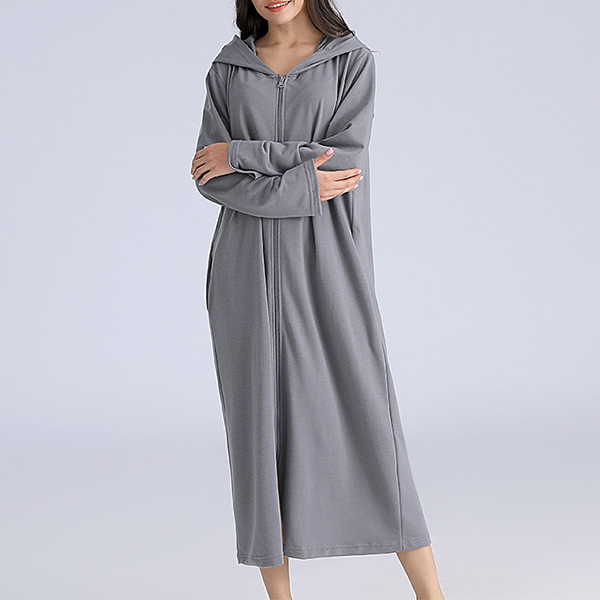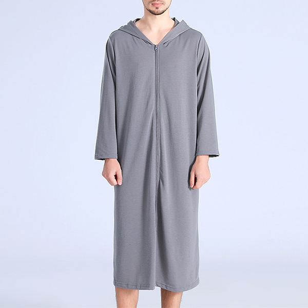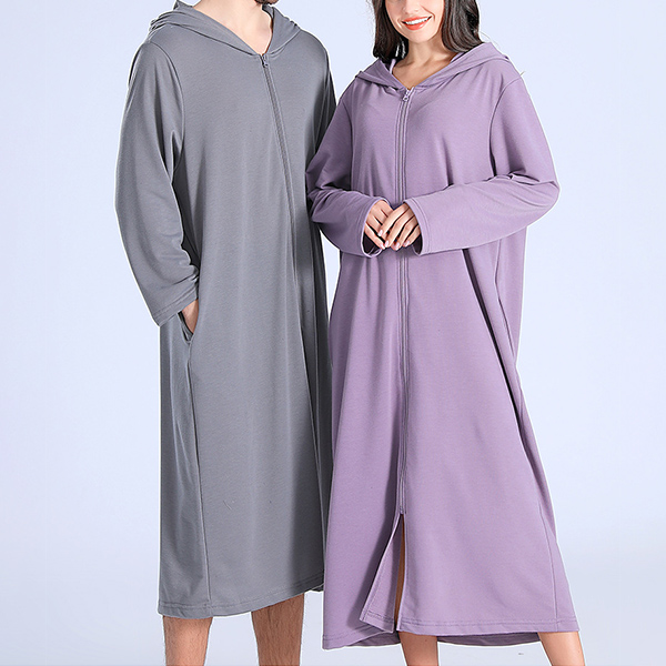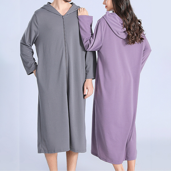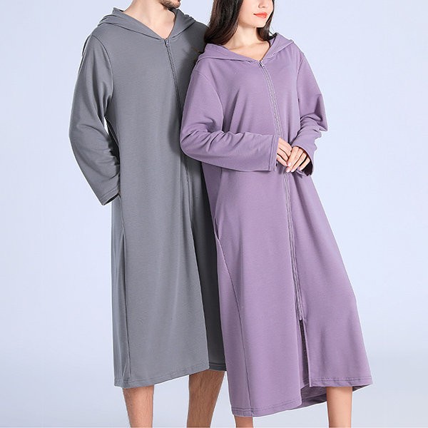 Comfortable Solid Color Long Sleeve Hooded Robe for Men and Women