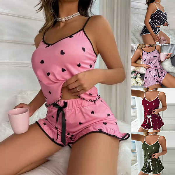 Comfy Contrast Color Heart Printed Two-piece Pajamas Set