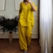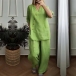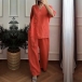 This comfortable and stylish two-piece set is the perfect combination of relaxed elegance. Crafted from a blend of breathable cotton and linen fabrics, this set includes a slant button shirt and loose, flowing pants, creating a versatile and effortless look.